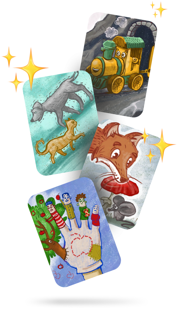 Meséinkkel könnyű a tanulás. Olyan átfogó témaköröket érintenek, mint az illem, számolás, emberi tulajdonságok. Minden mese végén pedig tanítunk 5 egyszerű angol szót, aminek a kiejtését le is tudod játszani az applikációban.